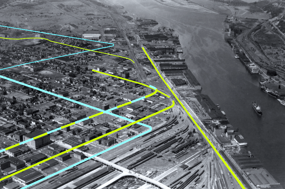 . Base image: c. 1935, Portland Archives A2005-005.1395.1